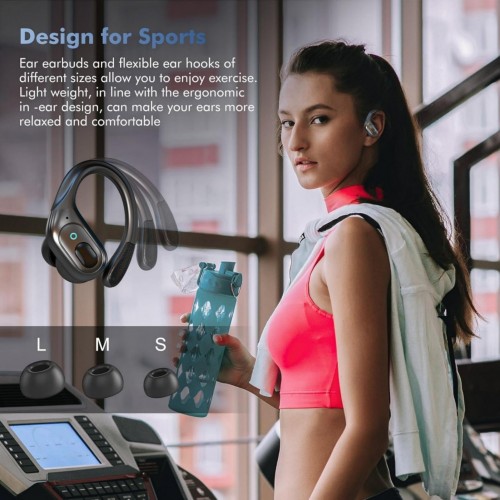 Ergonomic Sports Design: The sports headphones features ear hooks made of an innovative TPE (elastic) material, the ultra-light and ergonomic design allows you to wear them for a long time without feeling uncomfortable. Try the three tip sizes to get snug in ear headphones fit and create a perfect seal for crystal clear sound. The wireless earbuds bluetooth are waterproof with an IP7 nano-coating to protect them when sweating or getting wet